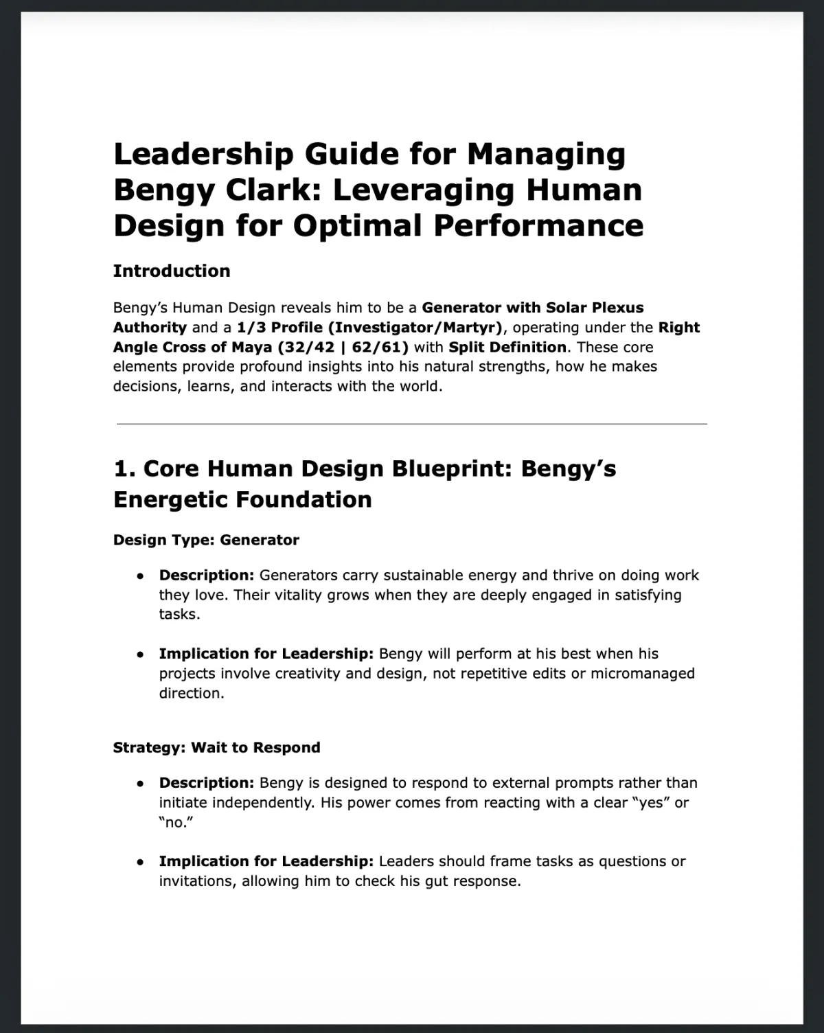 Concrete recommendations based on your type, authority, centers, and business, no vague advice.